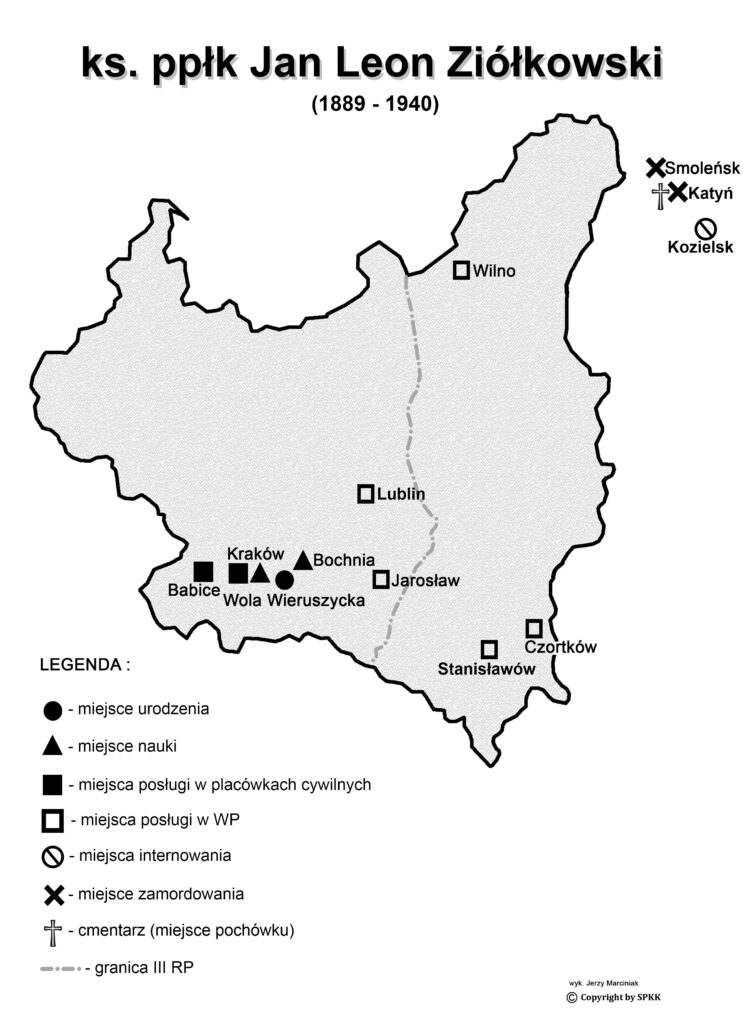 W kalendarzyku znalezionym w czasie ekshumacji w Lesie Katyńskim w 1943 roku przy zwłokach podporucznika Bronisława Wajsa pod datą 20 grudnia 1939 roku znajduje się zapis: Ks. Ziółkowski zamknięty do tiurmy na 7 dni – święta.