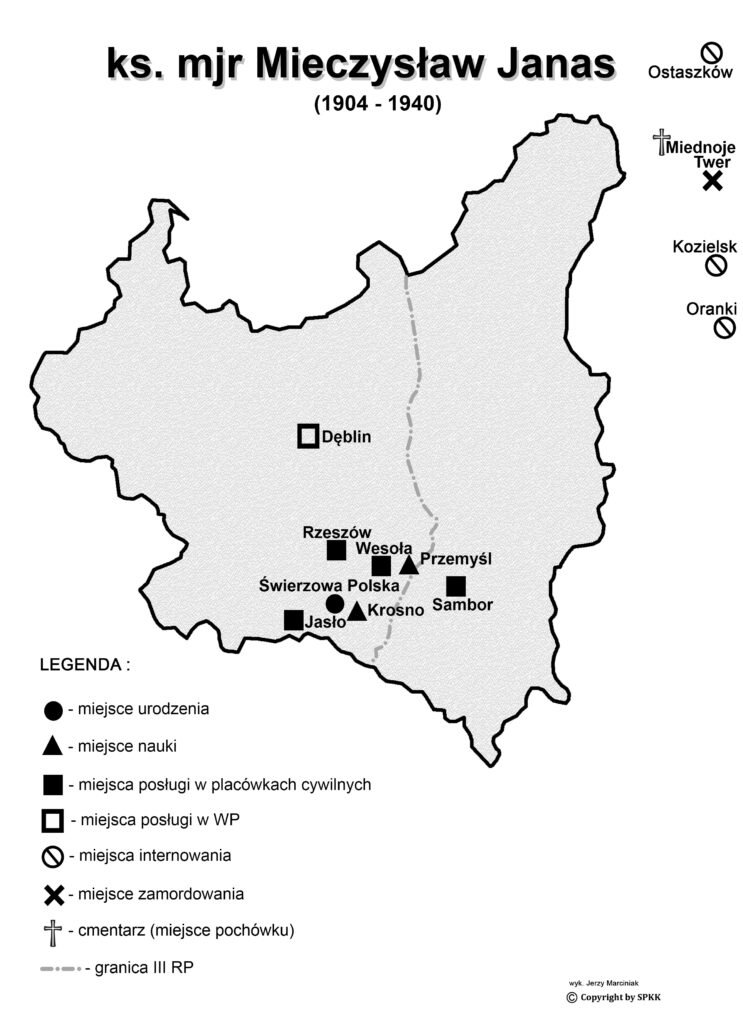 W kwietniu lub maju 1940 r. został z Ostaszkowa wywieziony do więzienia NKWD w Kalininie/Twerze, tam zamordowany i razem z innymi pogrzebany w Miednoje. Jego nazwisko figuruje na Katyńskiej Liście Wywozowej z obozu w Ostaszkowie, sporządzonej w940 r. przez NKWD w Moskwie nr 044/3 pozycja 47 sprawa 4818. Biogram księdza kapitana Mieczysława Janasa zamieszczono na stronie 287 w Polskiej Księdze Cmentarnej Miednoje. W październiku 2007 r. w ramach akcji Katyń pamiętamy – uczcijmy pamięć bohaterów został pośmiertnie mianowany na stopień majora WP. W grudniu 2009 r. został zgłoszony w grupie 24 księży kapelanów WP pomordowanych w 1940 r. w Katyniu, Charkowie i Twerze na kandydata do procesu beatyfikacyjnego męczenników wschodu (1918-1989) z okresu drugiej wojny światowej.