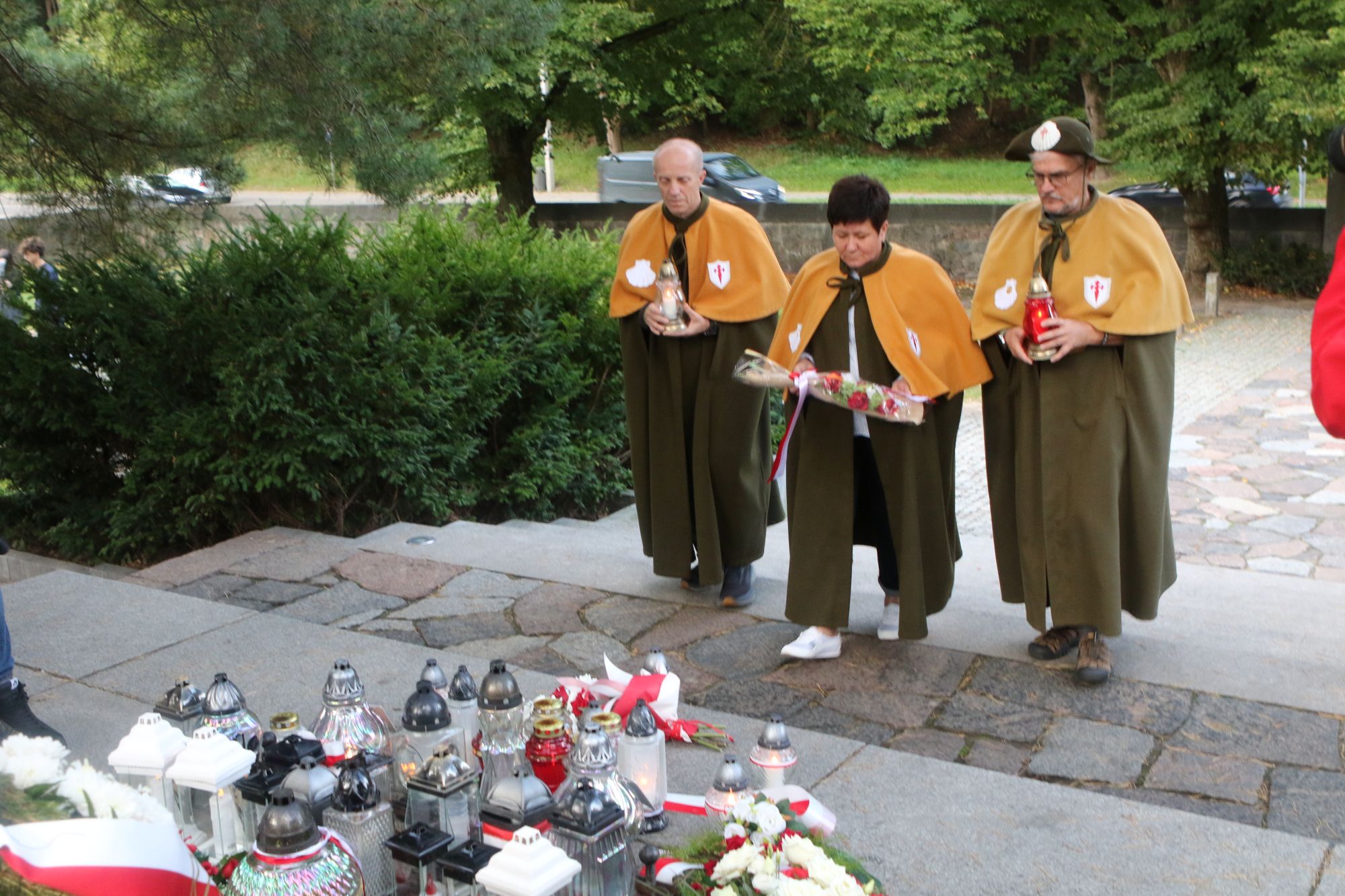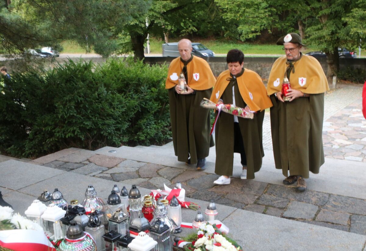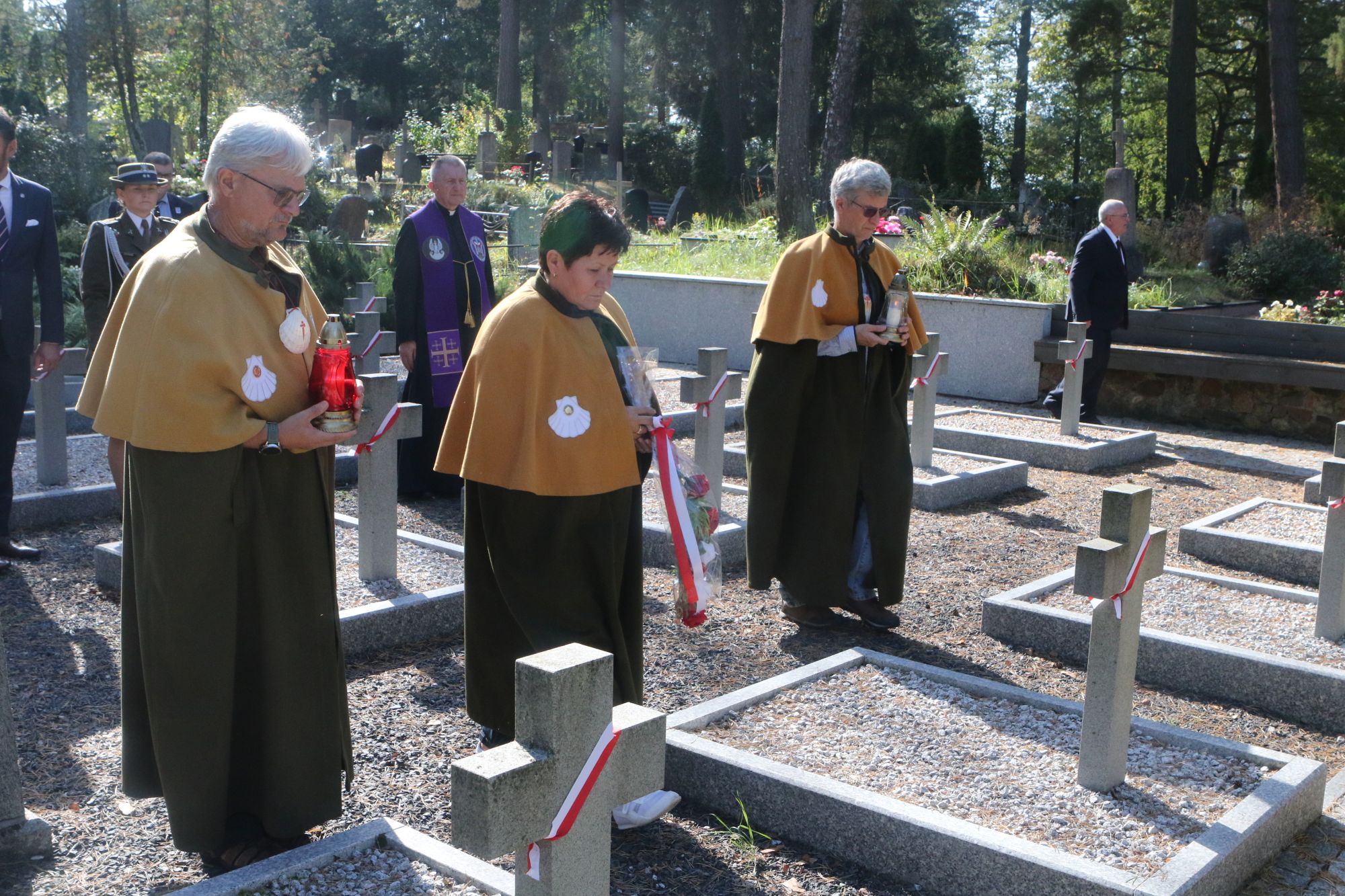 Pierwsze kroki, uczestnicy pielgrzymki skierowali na Cmentarz na Rosie, gdzie oddali hołd Marszałkowi Józefowi Piłsudskiemu i jego matce, Marii Piłsudskiej z Bilewiczów. Po modlitwie autorstwa ks. Piotra Skargi za Ojczyznę, którą odmówił ks. prał. Zbigniew Kępa delegacja w strojach Konfraterni św. Jakuba Apostoła złożyła wiązankę kwiatów oraz znicze.