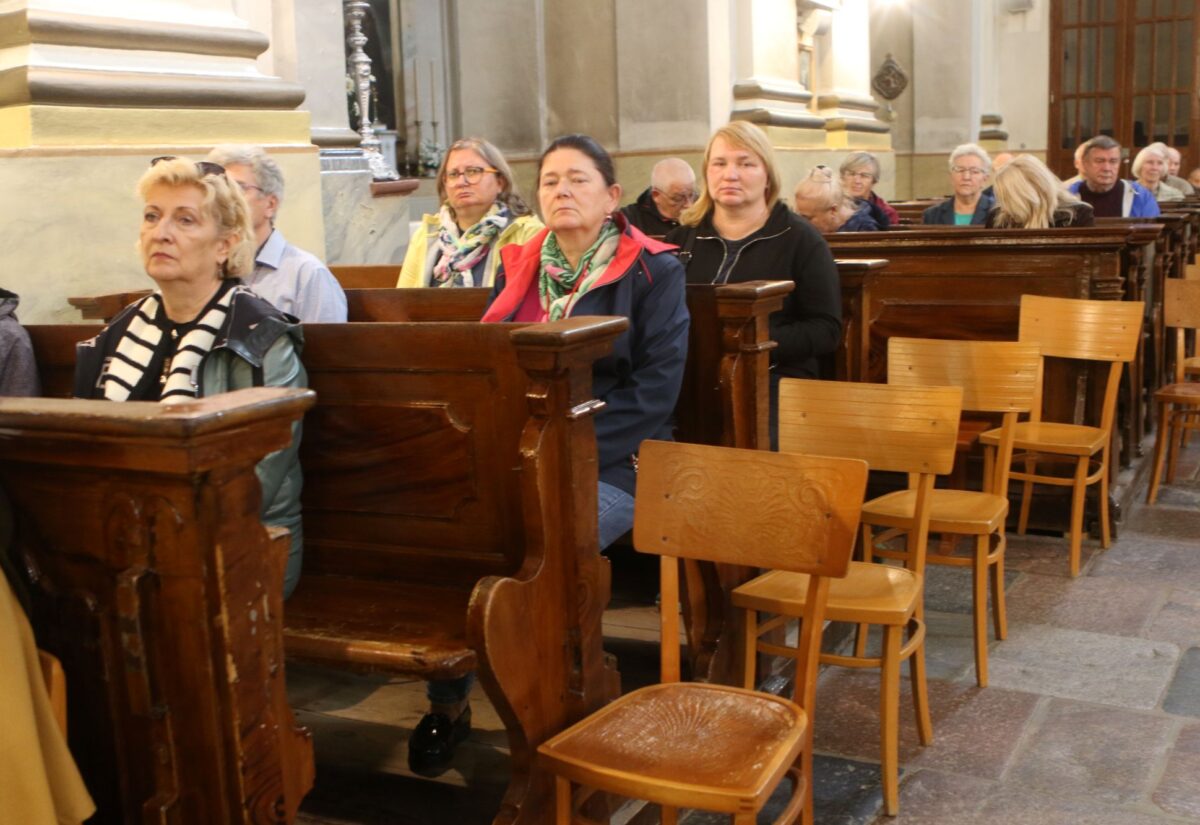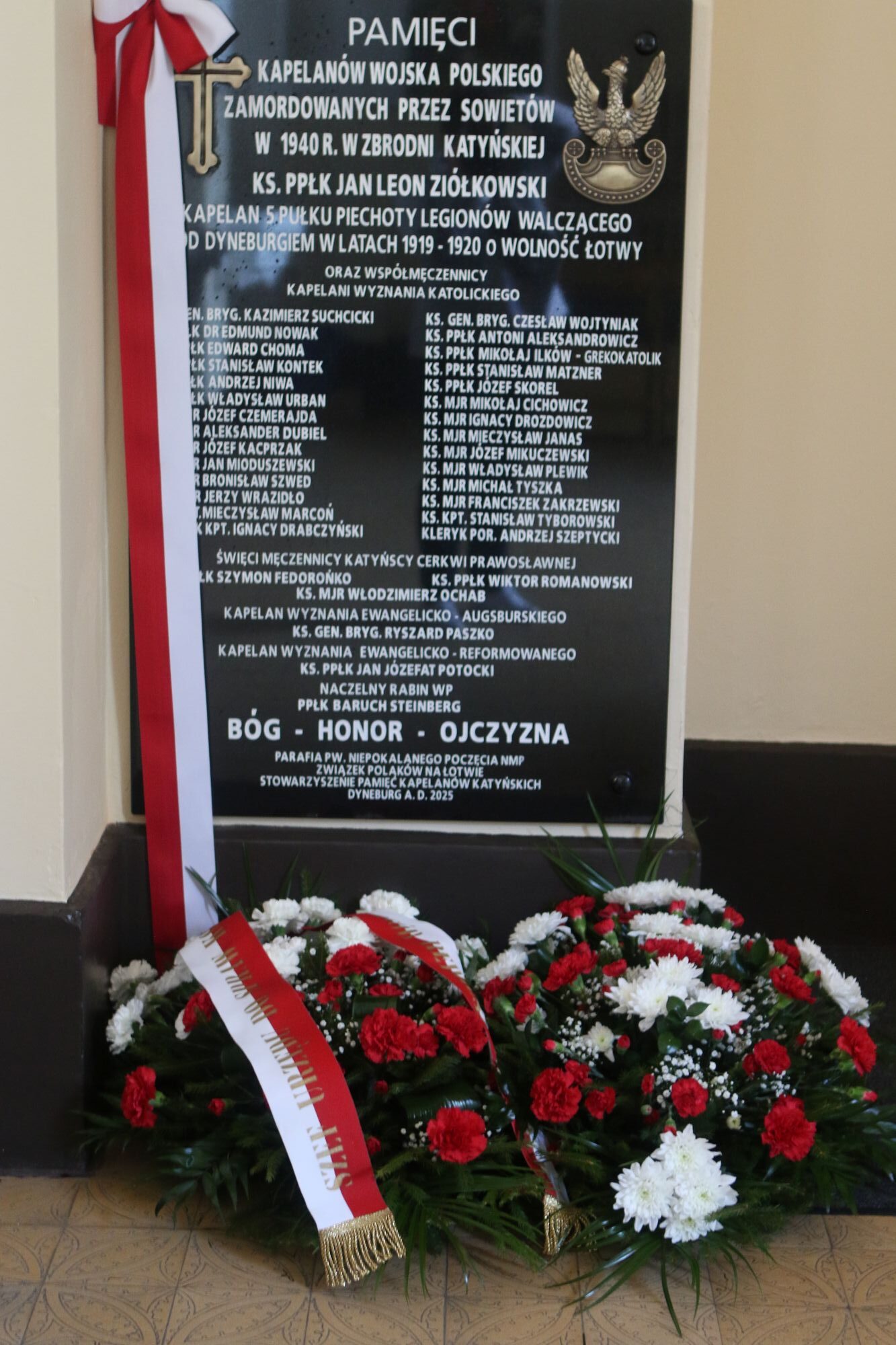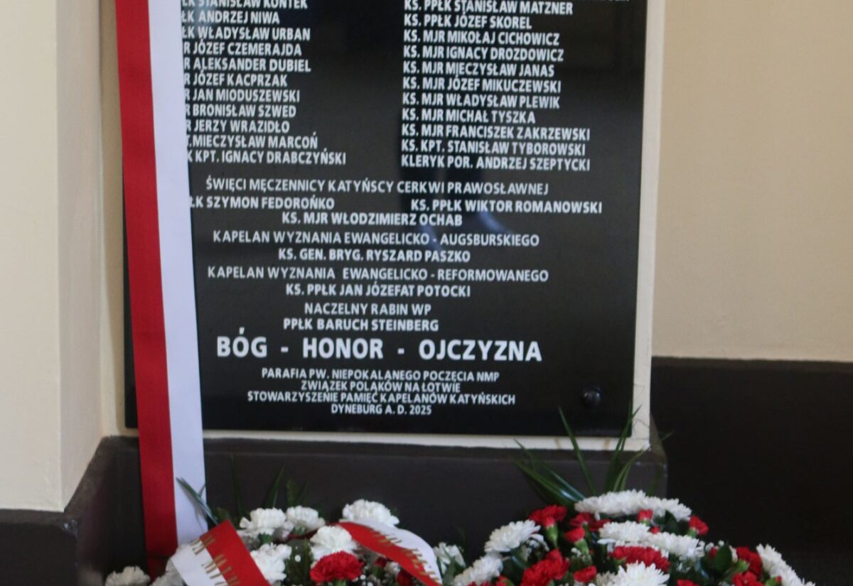 Takim zakazanym tematem była także zbrodnia katyńska. Po zwiedzeniu katedry katolickiej św. Jakuba, zabytkowego rynku odbyła się Msza św. w kościele pw. Matki Bożej Bolesnej, z udziałem Polaków, obywateli Łotwy. Mszę św. celebrowali ks. Zbigniew Kępa oraz ks. Józef Brzostowski. W kazaniu ks. Kępa treść kazania oparł o wskazania św. Pawła skierowane do ucznia, Tymoteusza, który zachęcał go do postępowania za sprawiedliwością, pobożnością, wiarą, miłością, wytrwałością, łagodnością (1 Tm 6, 11).