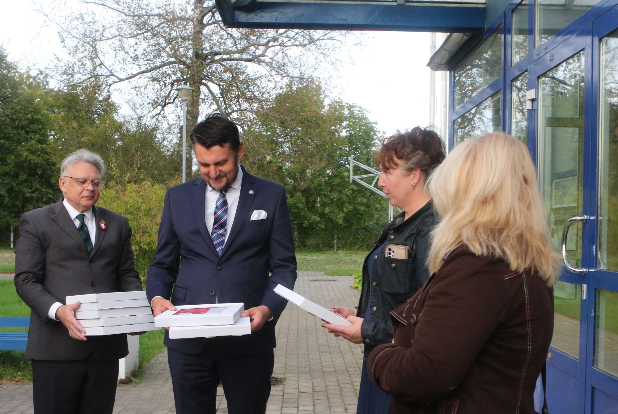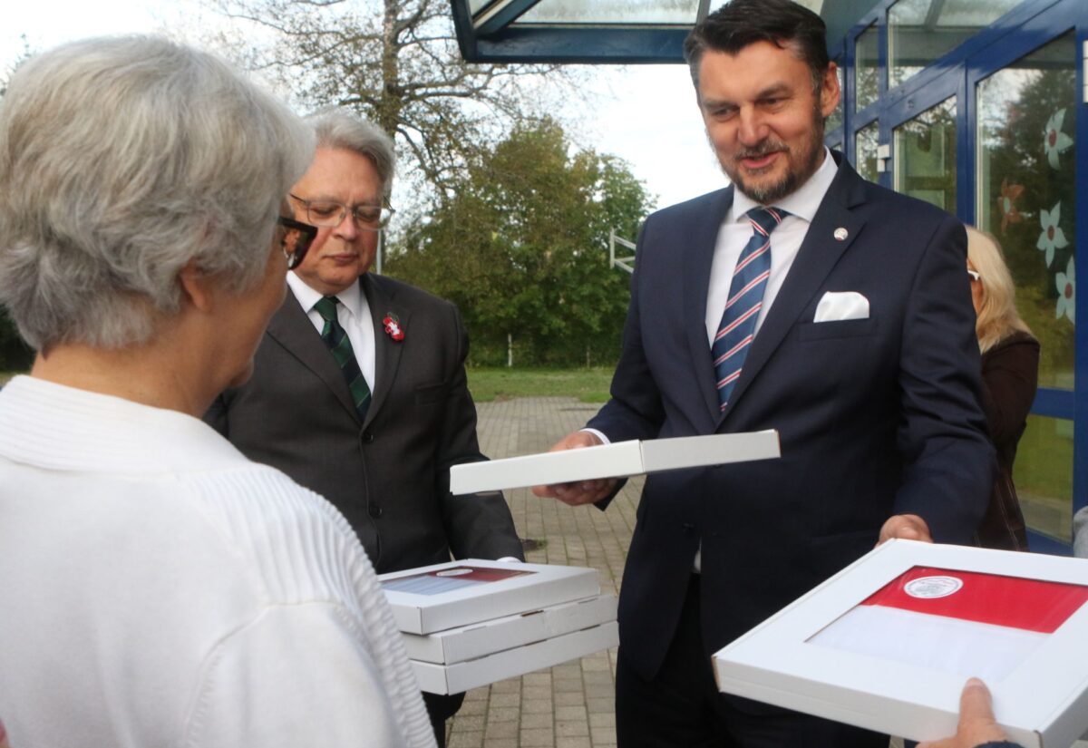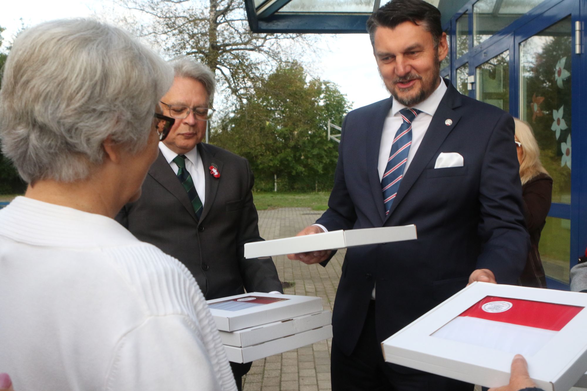 Po Mszy św. min. Lech Parell odznaczył ks. Edwarda Woronieckiego, księdza proboszcza Parafii w Krasławiu medale „Pro Patria”, dziękując za jego zaangażowanie w działalność Związku Polaków na Łotwie, a także w zachowaniu pamięci o polskich żołnierzach walczących na tych terenach w styczniu 1920 r.