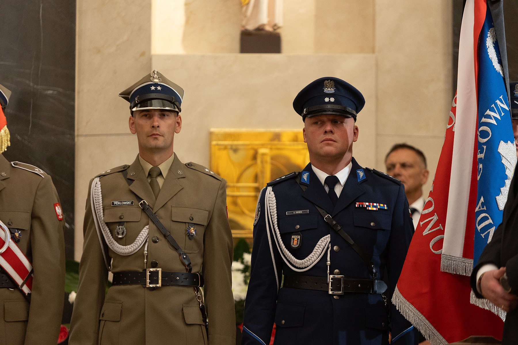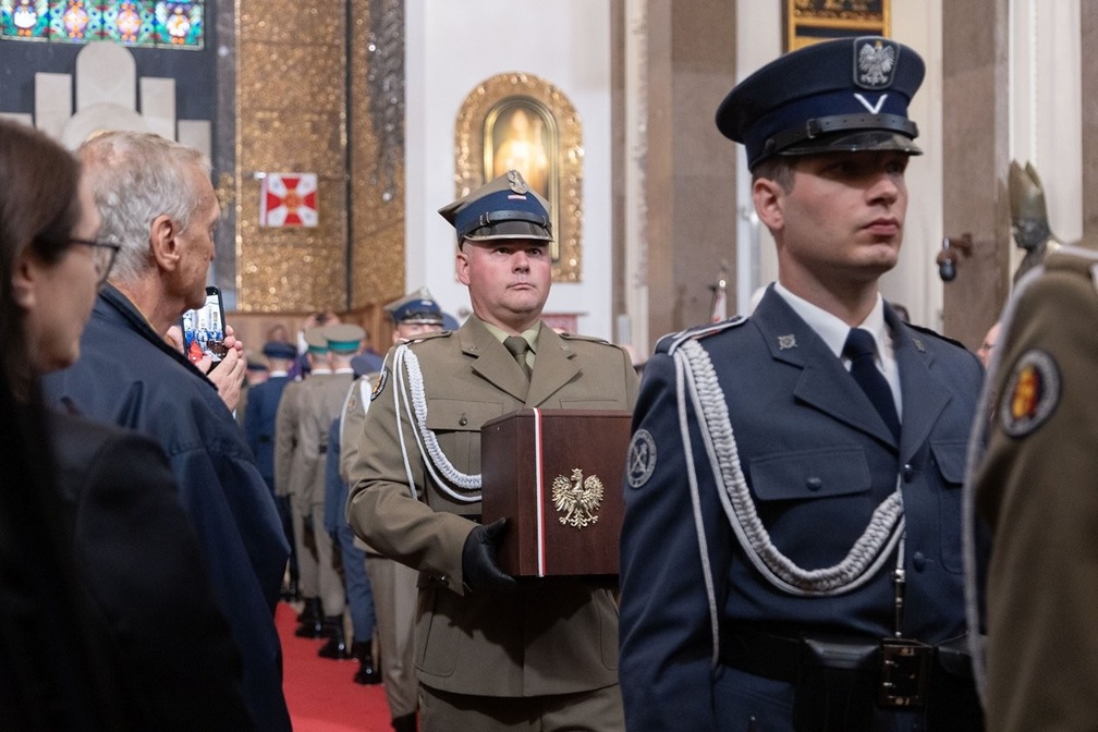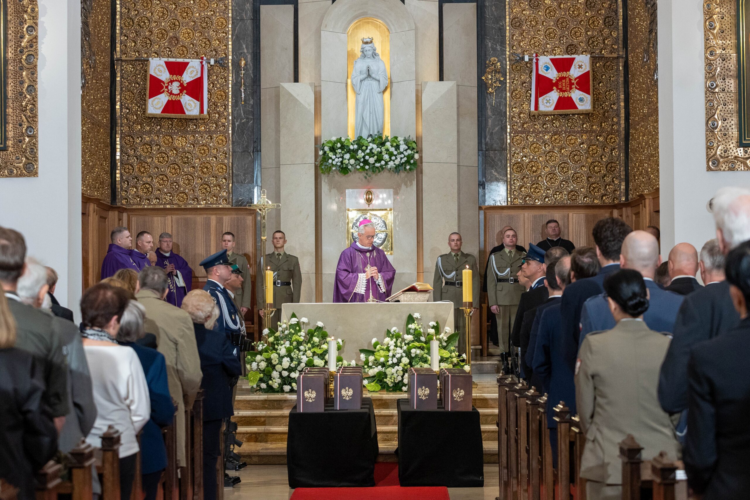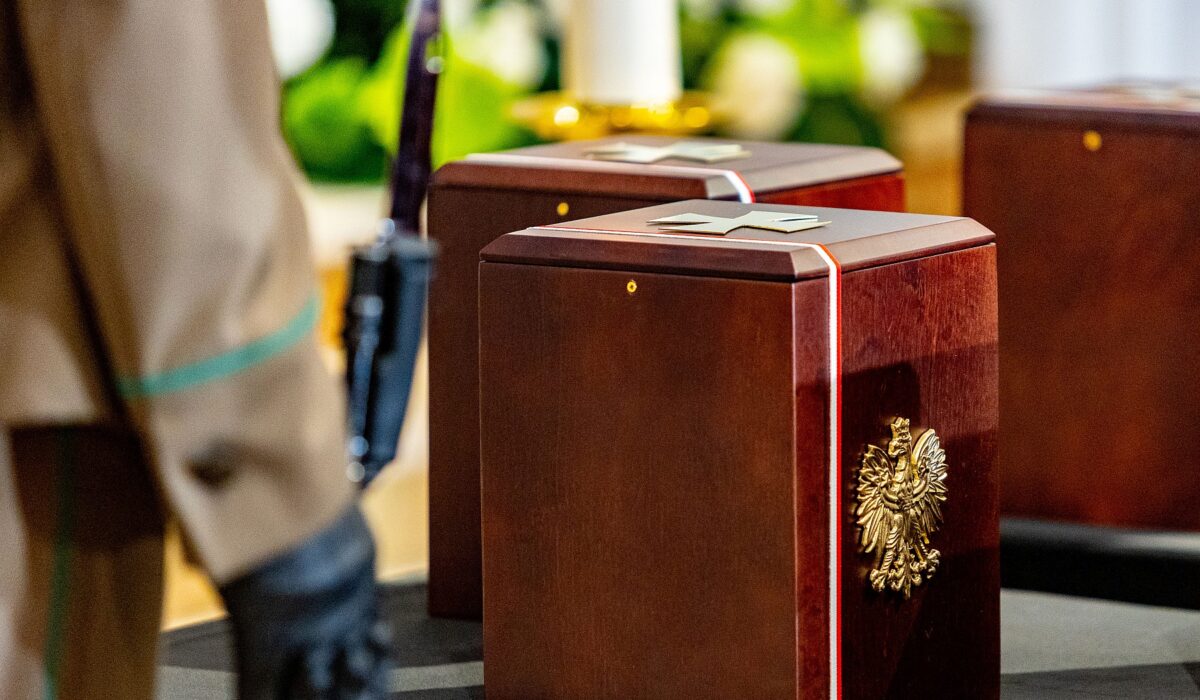 Trumny ze szczątkami ofiar zostały przeniesione przez żołnierzy oraz funkcjonariuszy Straży Granicznej, Służby Więziennej i Policji do krypty katedry polowej. Wieniec od narodu złożył prezydent Karol Nawrocki.
